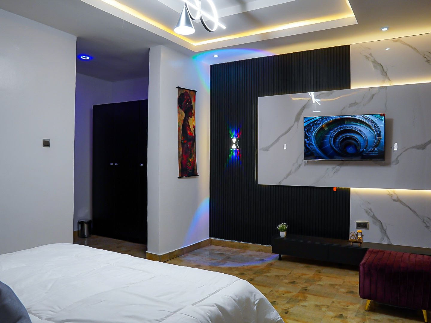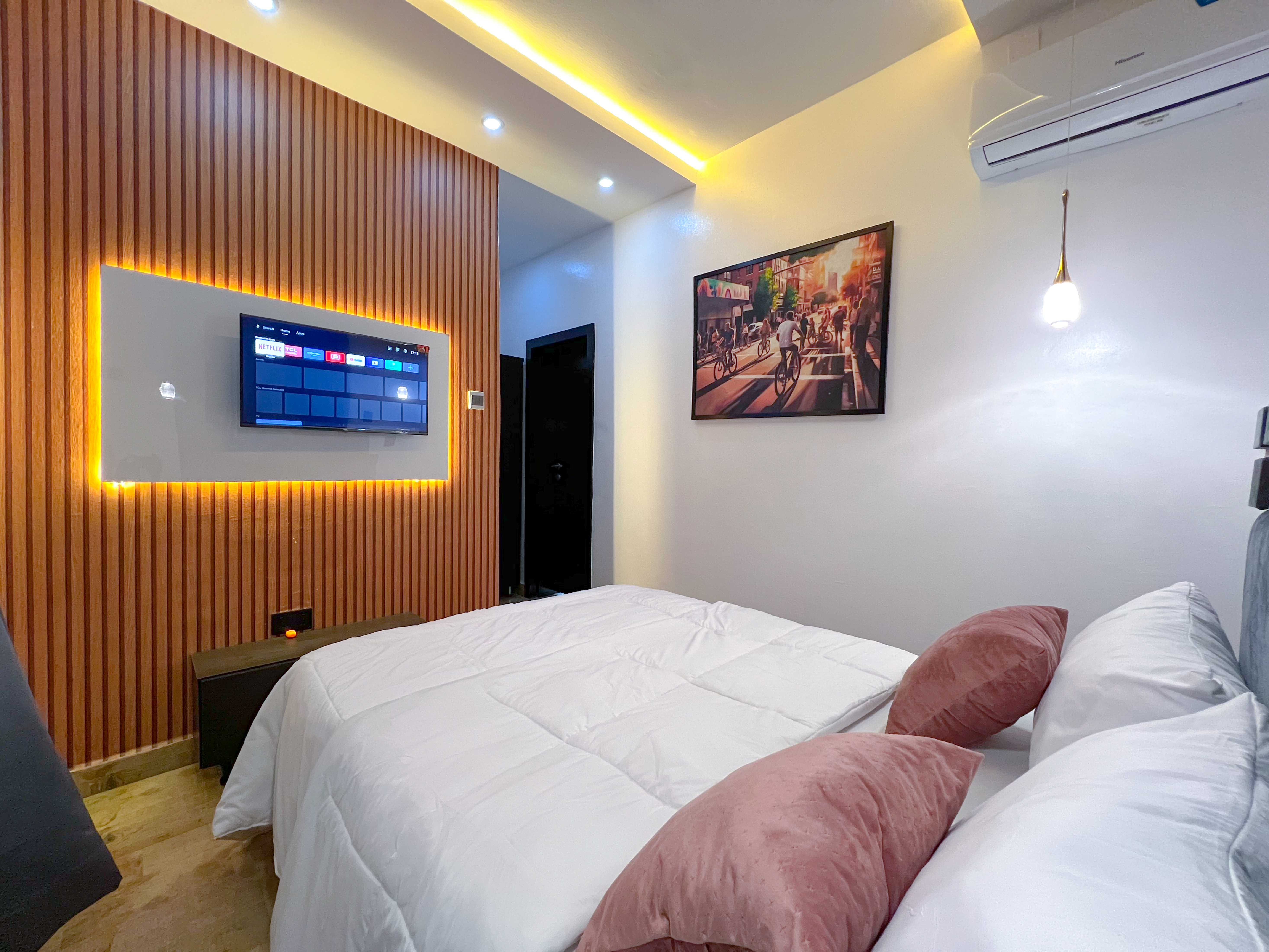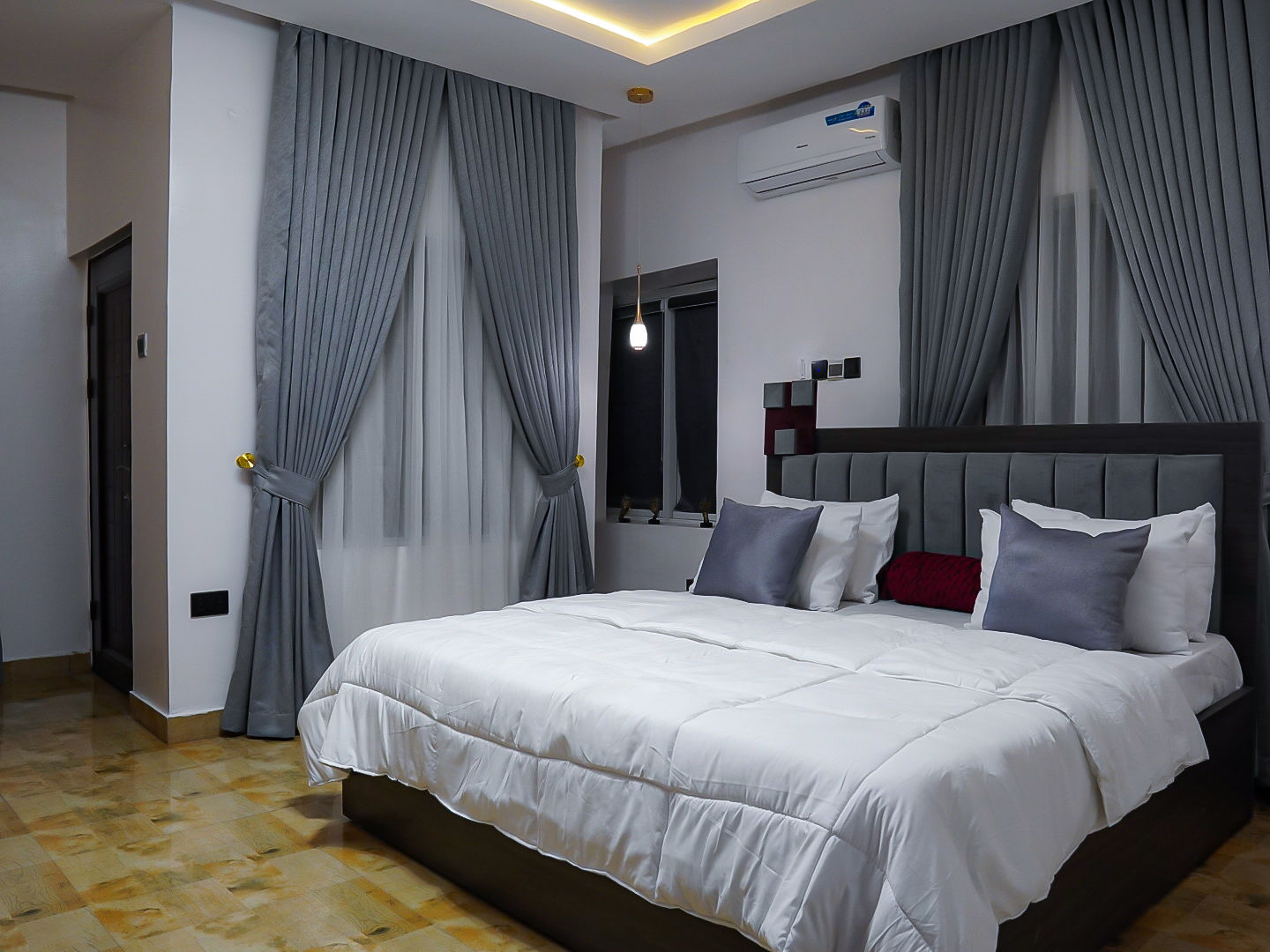 Key Features: ▪︎ 3 / 4 Bedroom Duplex Self Compound (Maximum privacy) • Spacious living room + smart TVs (Netflix, YouTube, DSTV) • High-speed Wi-Fi • Fully equipped modern kitchen(with washing machine) • 4 luxury bedrooms all En-suite(AC + smart TVs) • Modern bathrooms + toiletries ▪︎ Bluetooth sound system ▪︎ Outdoor barbecue grill with barbecue utensils ▪︎ Smart door ▪︎ Exclusive Outdoor Lounge ▪︎Secured & Gated Estate • Private compound, 24/7 security, 24/7 light, parking (2 cars) ▪︎ Daily House-keeping • Backup power (inverter)